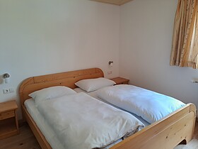 Doppelzimmer mit Westbalkon oder direktem Zugang zum Garten. Eingerichtet im Tiroler Stil, Schreibtisch, Kofferablage, Dusche/WC mit Haarfön, Flachbildfernseher mit SAT-TV, Telefon und Zimmersafe.