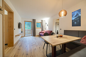 Patrizia apartment (attic apartment) This dream apartment is 93m² in size and features a living room (extra bed available) and separate kitchen, two double bedrooms, each with a bathroom, and a large terrace. From there, you have a great view of the farm life.