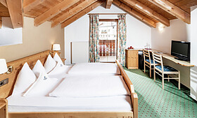 Our signature Suite consists of a large living area with a view on the pool, landscape and the forests. The untouched nature of the Ridanna Valley can penetrate the entire Suite through the large windows. The Panorama Suite has a master bedroom, a separate room for up to two children, a panoramic balcony, two bathrooms with a large shower, one with infrared modules, toilet, two flat-screen TVs, a room safe, direct dial telephone and minibar. The floor is suitable for allergy sufferers, without carpets. A garage parking space is also included. The Panorama Suite is located on the top floor of the main building.