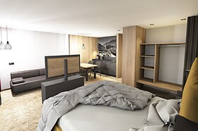 suite for 2 to 3 persons with comfortabel boxspringbed, daybed, full equiped kitchen, bedroom with balcony, bathroom with bathtub and bidet, towels, bathrobe, terrace, wlan, minibar, smart TV and safe